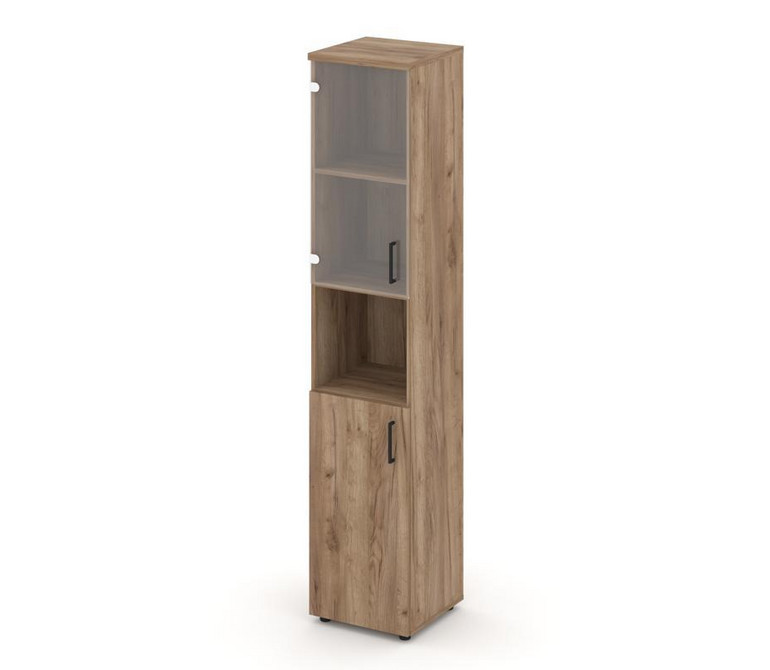 Style Project Шкаф высокий узкий SN.STU.E-105(L) Дуб Табак/Прозрачный/Черный Ручки 400*400*1982