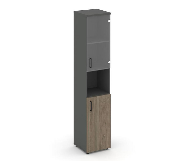 Style Project Шкаф высокий узкий SN.STU.E-105(R) Антрацит/Вяз Благородный/Прозрачный/Черный Ручки 40