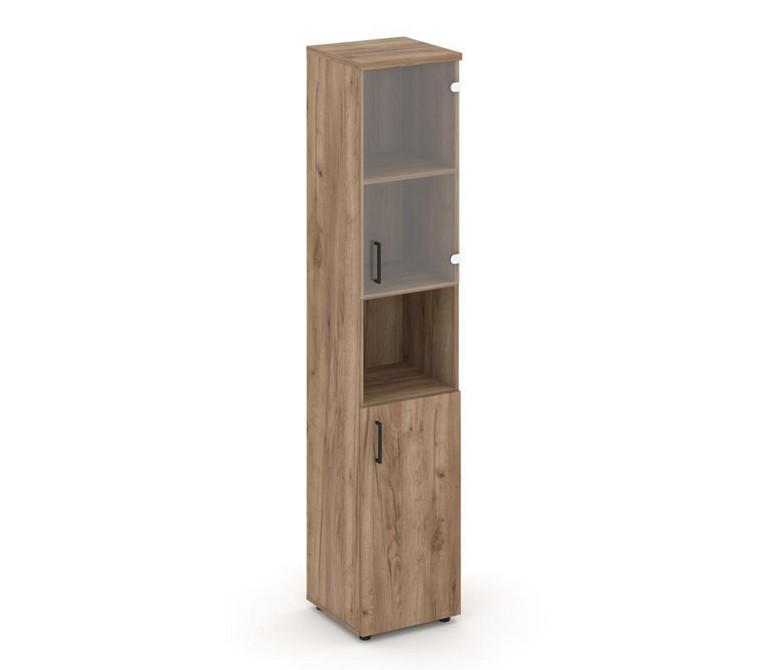 Style Project Шкаф высокий узкий SN.STU.E-105(R) Дуб Табак/Прозрачный/Черный Ручки 400*400*1982
