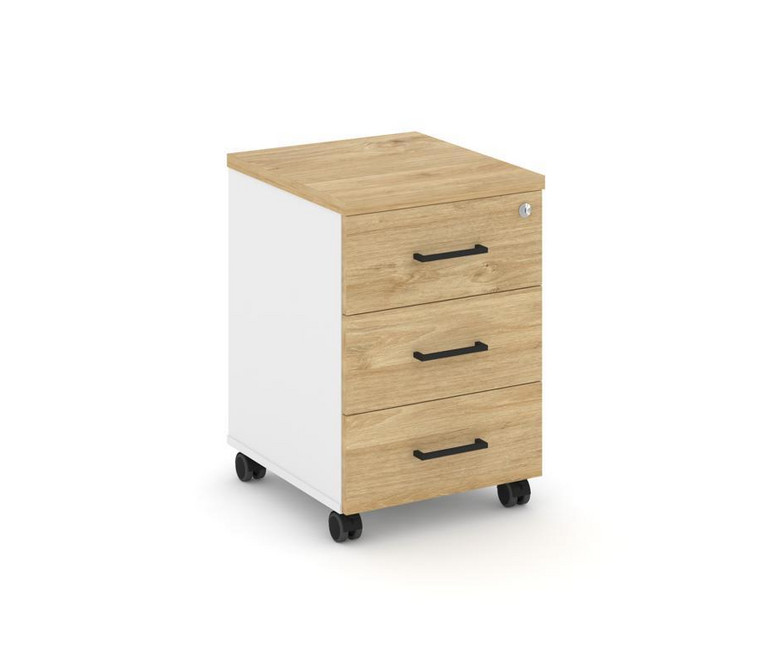 Style Project Тумба мобильная 3 ящ. Стандартные колеса SN.TM-002 Белый/Тиквуд Светлый/Черный Ручки 4