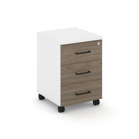 Style Project Тумба мобильная 3 ящ. Стандартные колеса SN.TM-002 Белый/Тиквуд Светлый/Черный Ручки 4