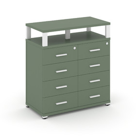 Concept Тумба приставная широкая 8 ящ. с надставкой широкой CN.TSP-015 W Кобо/Металл Белый 836*420*9
